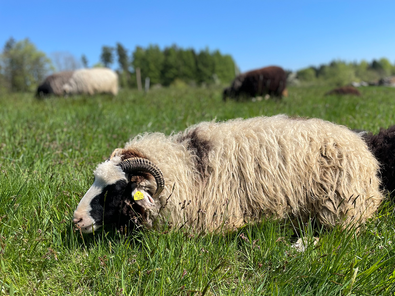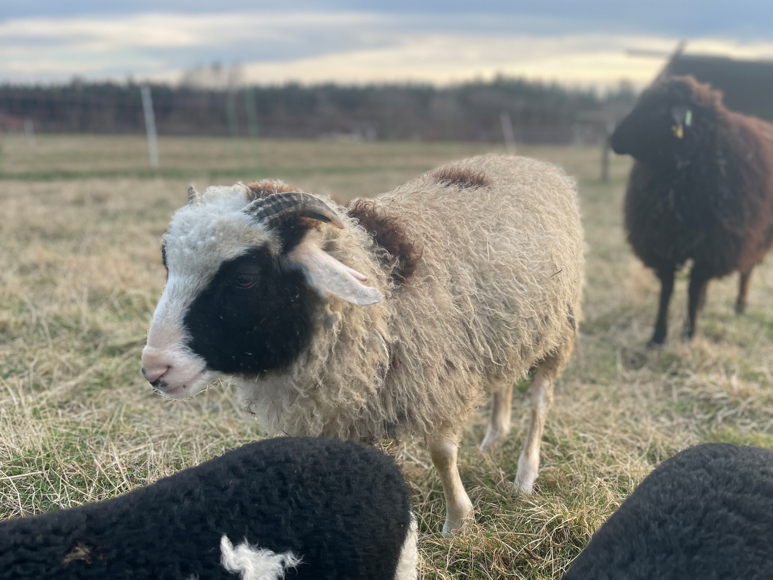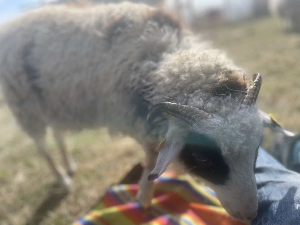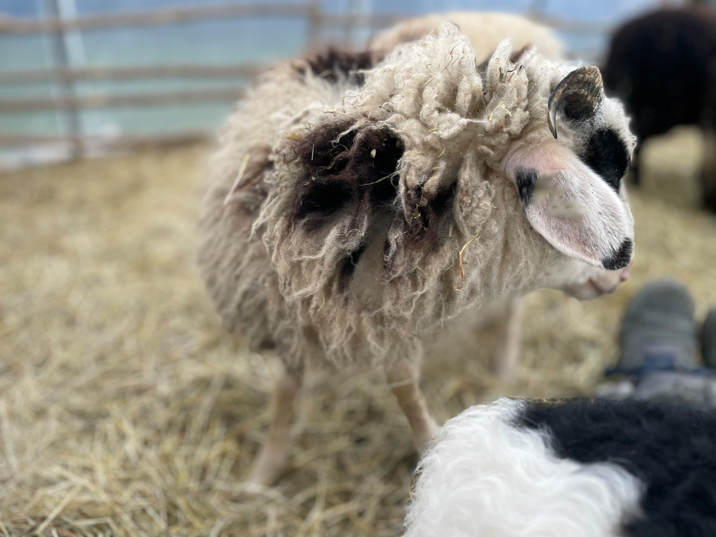 Als Lämmchen hatte sie mit Würmern zu kämpfen und ist darum ein bisschen kleiner als die anderen 1-Jährigen. Dafür hat sie ein wunderschön gemustertes Fell, vorallem die runden Flecken sind besonders.